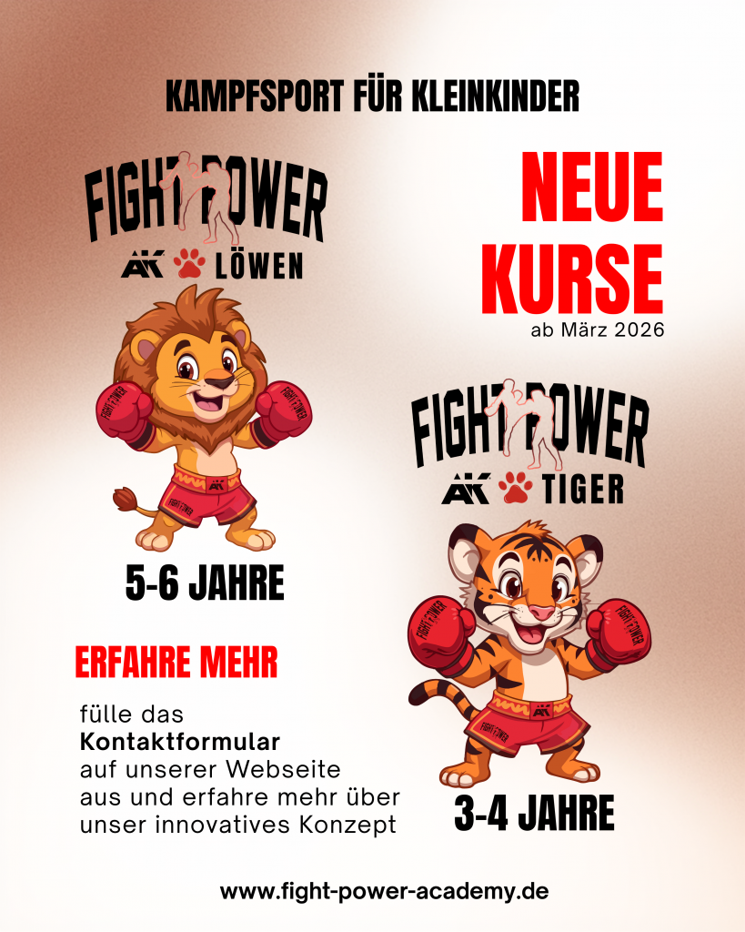 Unsere neuen Fight Power Kinderkurse starten ab März 2026 – und jetzt ist der perfekte Zeitpunkt, um deinem Kind einen Platz zu sichern.